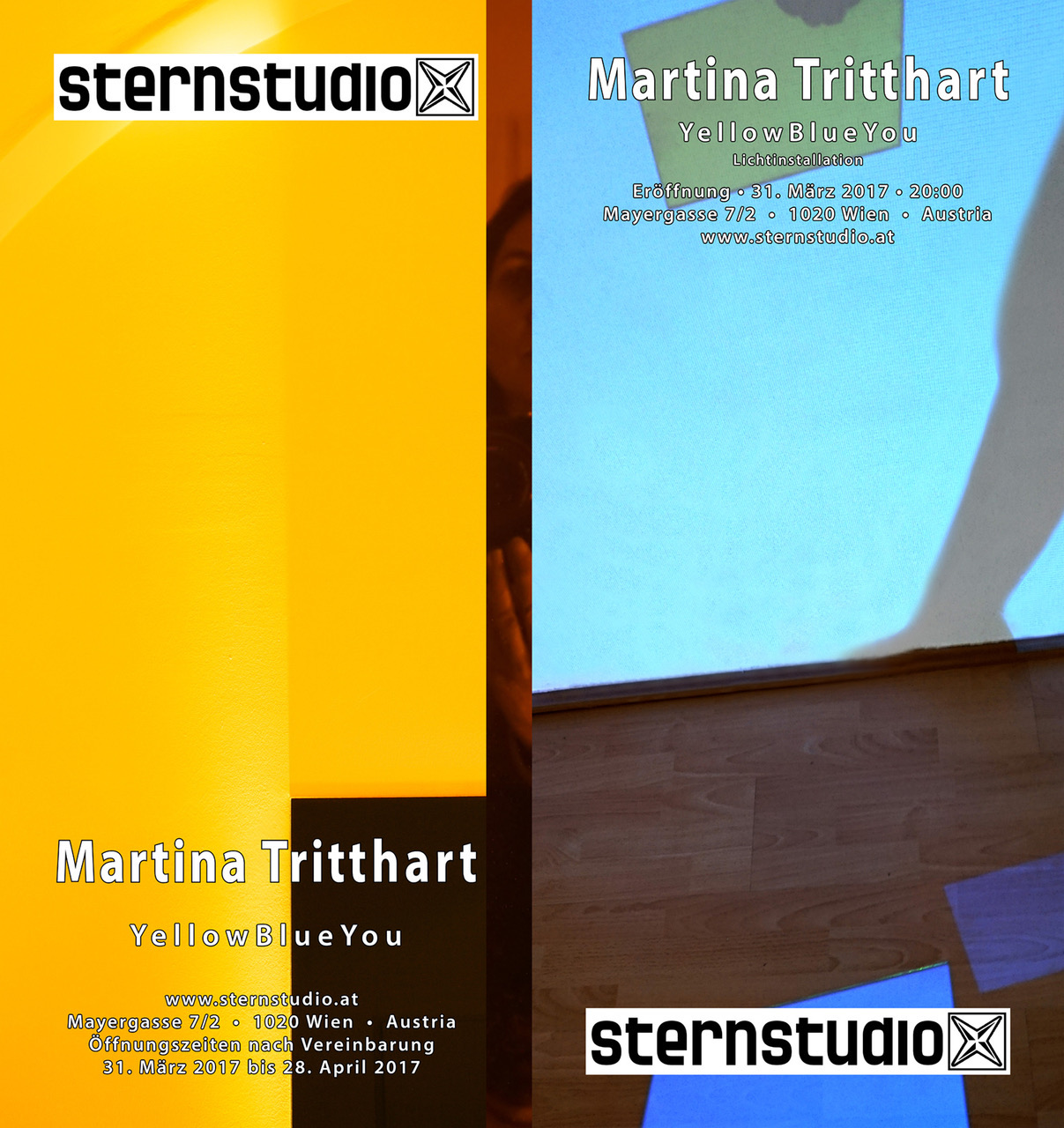 In der immersiven Lichtinstallation YellowBlueYou generiert die jeweils vorherrschende Lichtfarbe das Raumvolumen und die spezifische Atmosphäre. Das monochromatische gelbe Licht im kleineren der beiden Räume ermöglicht ein gutes Kontrastsehen aber außer der Farbe Gelb kein Farbensehen. In dieser gelben Helle befinden sich ein Spiegel und ein raumteilender reflektierender Vorhang für die Selbstwahrnehmung und die Verortung der Besucherinnen und Besucher. Im Gegensatz dazu erinnert der blaue Farblichtraum an ein kinematografisches Erlebnis. Die im Raum umher wandernden Schatten stammen von den Besuchern und Besucherinnen selbst. Sie kreuzen sich, überlagern die Videobilder live aufgenommener Schattenbilder und verdichten sich zur Finsternis. Sie sind Bestandteil einer sich ständig ändernden abstrakten Komposition, die zugleich das faktische Befinden im Raum und die subjektive Befindlichkeit darin bewusst machen.