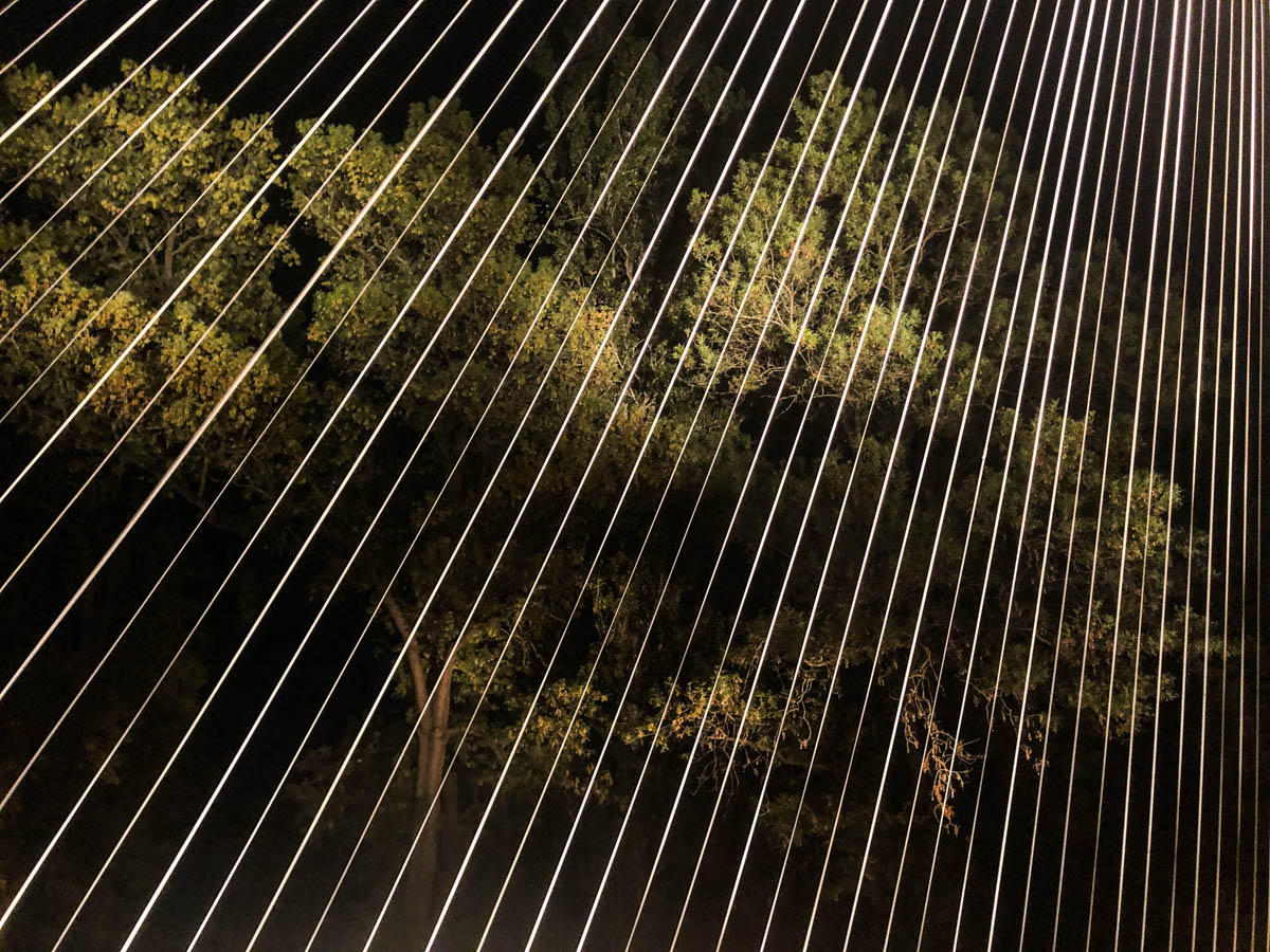 Right above the center of the labyrinth in the City Park in Skopje North-Macedonia raises BREATHING STAR, a dynamic light and space-installation. The size of the structure consisting of about 400 strings is 16 x 18 meter and 5 meter high. Together with a sophisticated light-choreography and a surround sound designed for the unique spatial situation the artwork changes its appearance, creating an oscillating, pulsating, vivid atmosphere. It is highly recommended to enter the structure. There is a walkthrough to experience the artwork from the inside. Beyond the experience of the artwork itself we want to draw the attention of the viewers to the night sky above. Breathing STAR becomes a window on the universe. BREATHING STAR was part of the international lightfestival „Skopje Light district“ in September 2021. BREATHING STAR is a project by mutual loop (Martina Tritthart & Holger Lang)