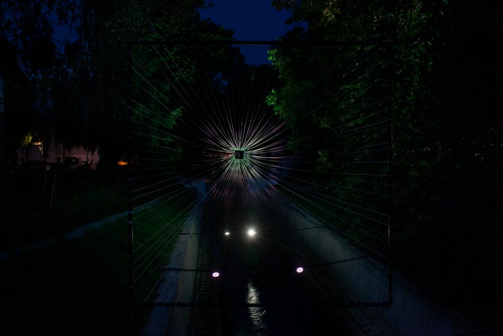 Dynamic light-and space-installation by mutual loop (Holger Lang & Martina Tritthart) for the center of Ljubljana (public space)at the International Lighting Guerrilla festival -Svetlobna Guerila from May 22 – June 17 2023, organized by Strip Core, curated by Katerina Mirović